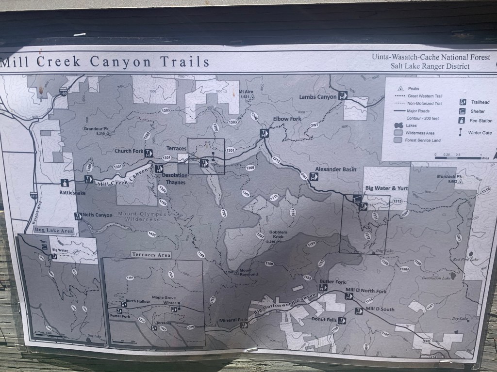 Our first expedition took place the on our first full day of the trip. An old friend picked us up from the resort, and we set off for Mill Creek Canyon. This area is just outside of Salt Lake City suburbs, and has a ton of options for outdoor activities. There were plenty of hiking trails. We saw a lot of pets and people preparing to camp during our trek to the top of Mt Aire. The path to Mt Aire is moderate in difficulty, but the view at the top is worth it.