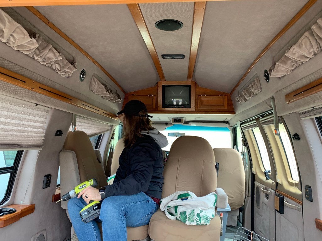 Serious work began on the van in January of the following year. We have spent hours tearing out the interior and insulation, as well as the carpeting and floor insulation.