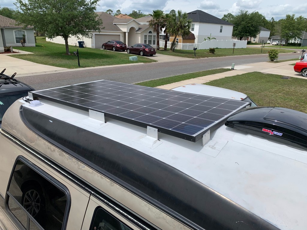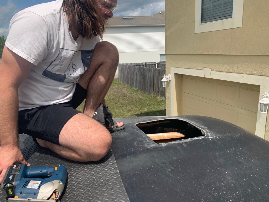 After the flooring, we began work on the roof. The solar panel that we went with is rather large, so that really only left room to add a fan to the roof. We painted the roof with a white RV paint to help keep the temperature down inside the van. Installing the panel and fan were was pretty difficult, with precise measurements and heavy lifting, but the most difficult task was yet to come.