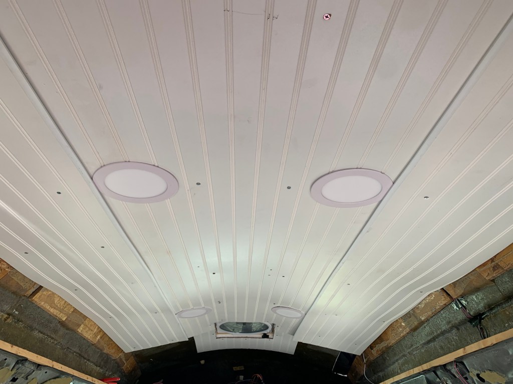 A week later we were determined to finish the ceiling. It started with insulation, we then added the ceiling panels, and finished with the installation of lights.